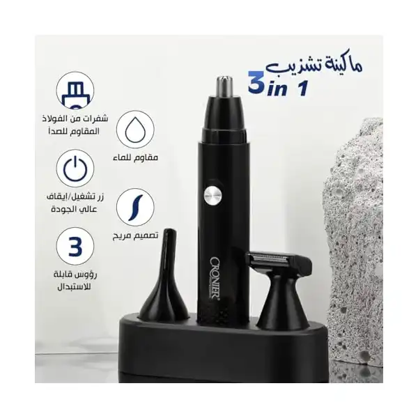 اداة تشذيب شعر الانف والاذن 3 في 1 مقاومة للماء وقابلة لاعادة الشحن مع شفرة من الستانلس ستيل و3 ملحقات للاستخدام لمدة 60 دقيقة، CR-311,
