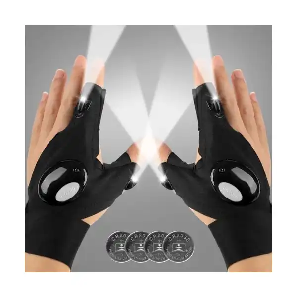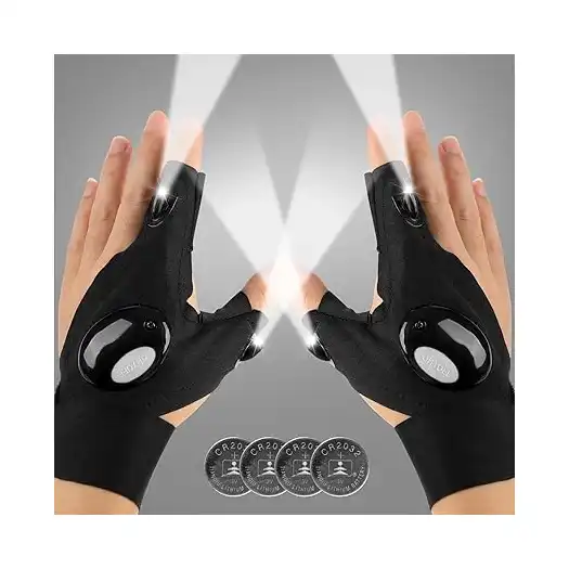 جوانتيات مزودة بمصابيح LED، جوانتيات الصيد والانشطة الخارجية بشريط مرن، مناسبة لاصلاح السيارات وربط المسامير والجري والصيد والتخييم والتنزه في الاماكن المظلمة، هدايا للرجال في عيد الاب، زوج واحد