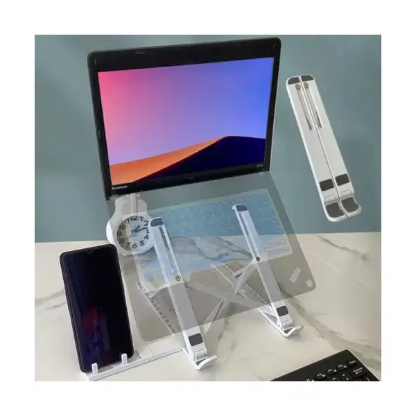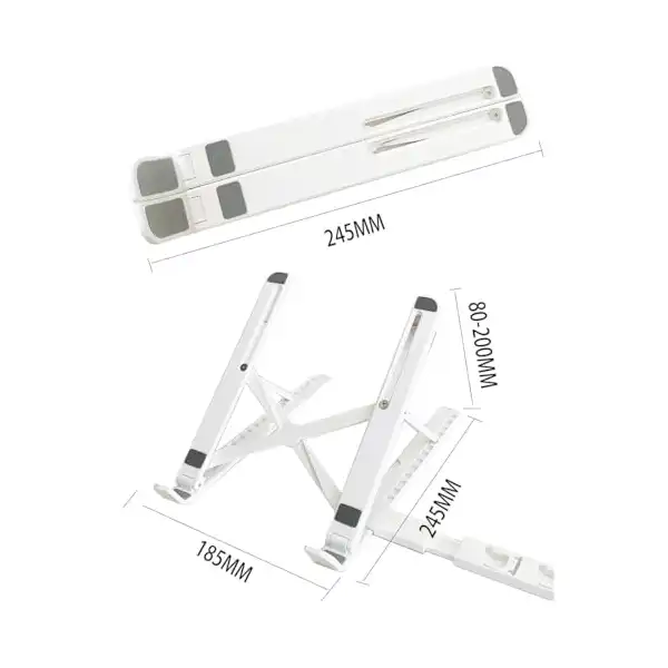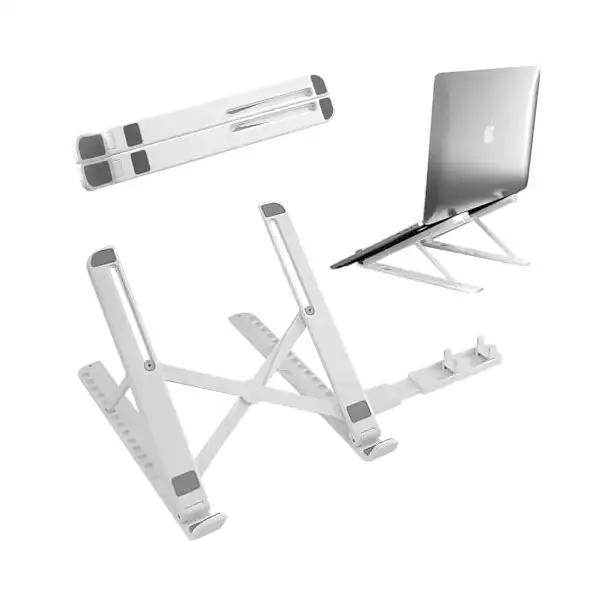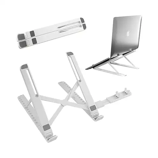 [سهل الحمل وقابل للطي] حامل اللاب توب القابل للتعديل هذا مصنوع من مادة ايه بي اس، خفيف الوزن، ويمكن طيه بسرعة إلى حجم صغير. تأتي العبوة مع حقيبة تخزين محمولة يسهل حملها عند السفر أو التنقل بين المكتب والمنزل.