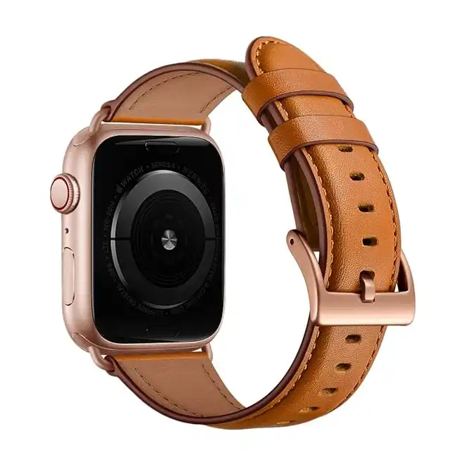 سوار بديل جلدي اصلي متوافق مع سلسلة ساعات ابل ووتش 6 5 4 3 2 1 SE 38 ملم 40 ملم من اوهينج، متوافق مع سوار ساعة ابل 38 ملم 40 ملم, 38mm, جلد، بني، للكبار من الجنسين