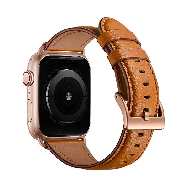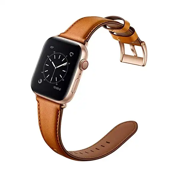 سوار بديل جلدي اصلي متوافق مع سلسلة ساعات ابل ووتش 6 5 4 3 2 1 SE 38 ملم 40 ملم من اوهينج، متوافق مع سوار ساعة ابل 38 ملم 40 ملم, 38mm, جلد، بني، للكبار من الجنسين,