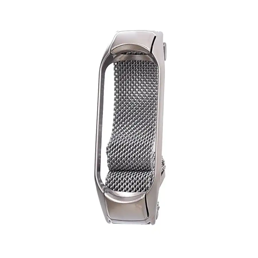 سوار ساعة معدني قابل للتعديل والتوسع مع غطاء شاشة بالكامل للجنسين متوافق شاومي مي باند 3-4 – فضي