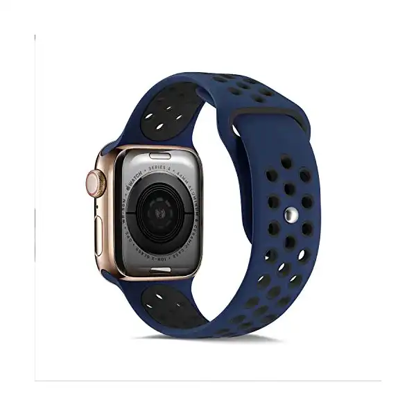 سوار مطاطي لساعات ابل ووتش مقاس 38 40 ملليمتر من السيليكون إصدار رياضي مع ثقوب للتهوية كحلي واسود للكبار من الجنسين,