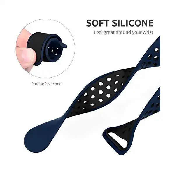 لماذا سوار مطاطي لساعات ابل ووتش مقاس 38 40 ملليمتر من السيليكون إصدار رياضي مع ثقوب للتهوية كحلي واسود للكبار من الجنسين؟