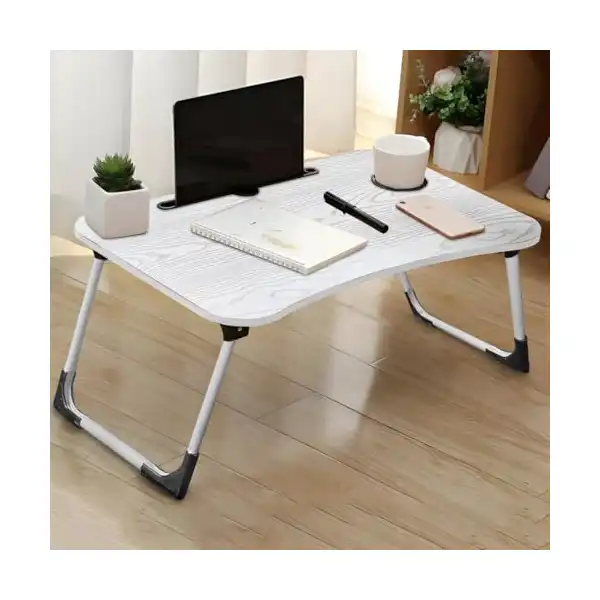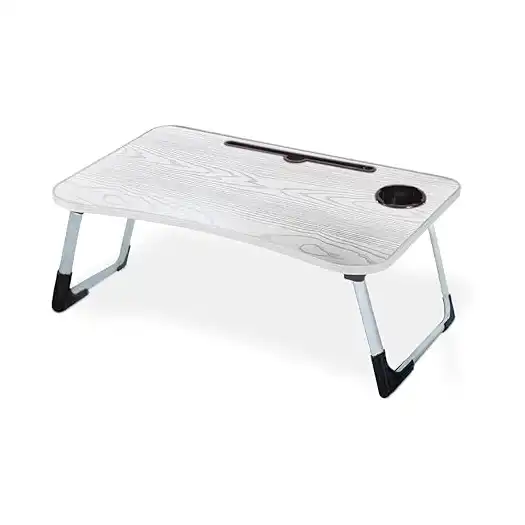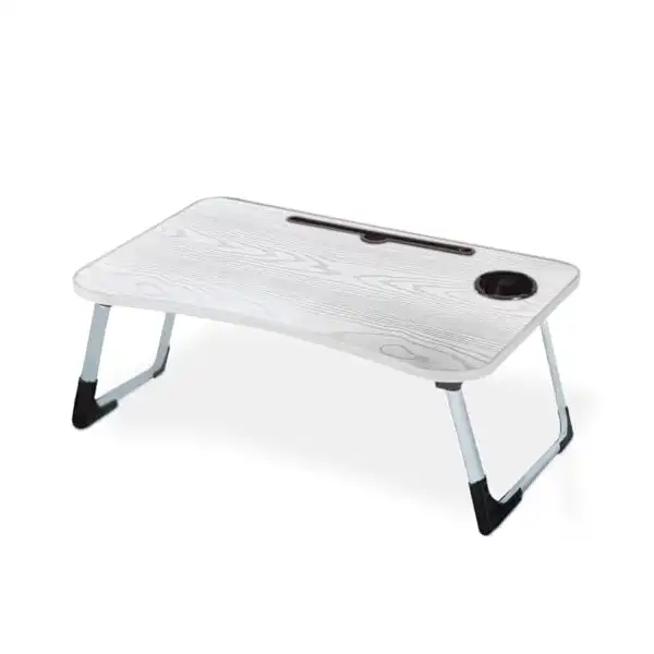 طاولة لاب توب ومكتب دراسة خشبي قابل للطي مريح مزود بحامل أكواب وتابلت متعدد الاستخدامات للعمل والدراسة وتناول وجبات الطعام والاستخدام على السرير (أبيض)