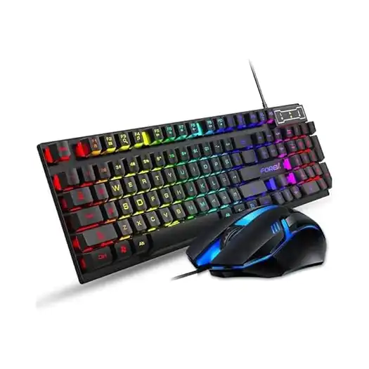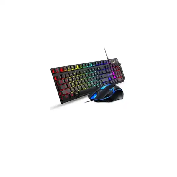 لوحة مفاتيح وماوس للألعاب بإضاءة ملونة ار جي بي بـ 104 مفتاح مقاومة للغبار والماء بلون أسود موديل FV-Q305S، Usb,