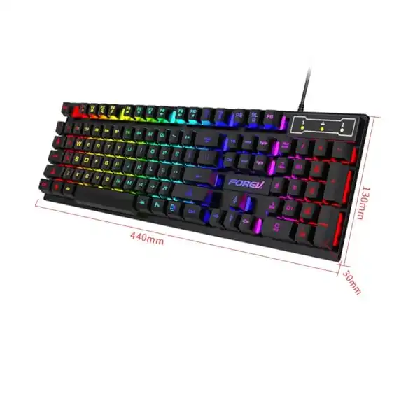 تفاصيل أكتر عن لوحة مفاتيح وماوس للألعاب بإضاءة ملونة ار جي بي بـ 104 مفتاح مقاومة للغبار والماء بلون أسود موديل FV-Q305S، Usb