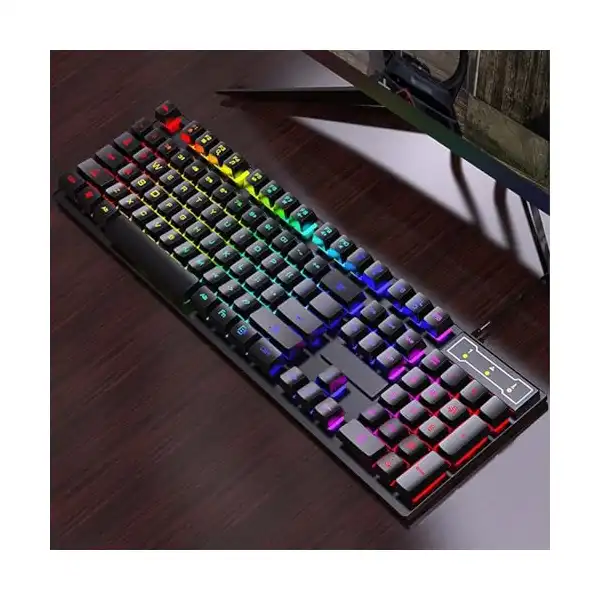 لوحة مفاتيح وماوس للألعاب بإضاءة ملونة ار جي بي بـ 104 مفتاح مقاومة للغبار والماء بلون أسود موديل FV-Q305S، Usb