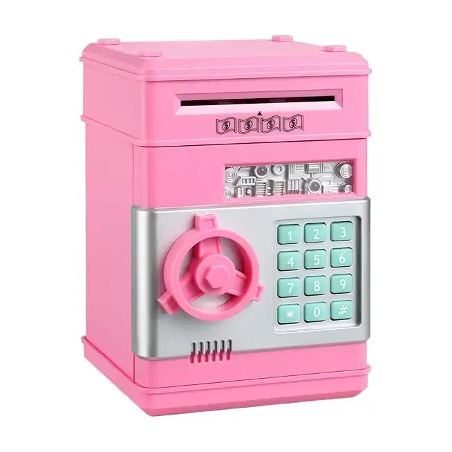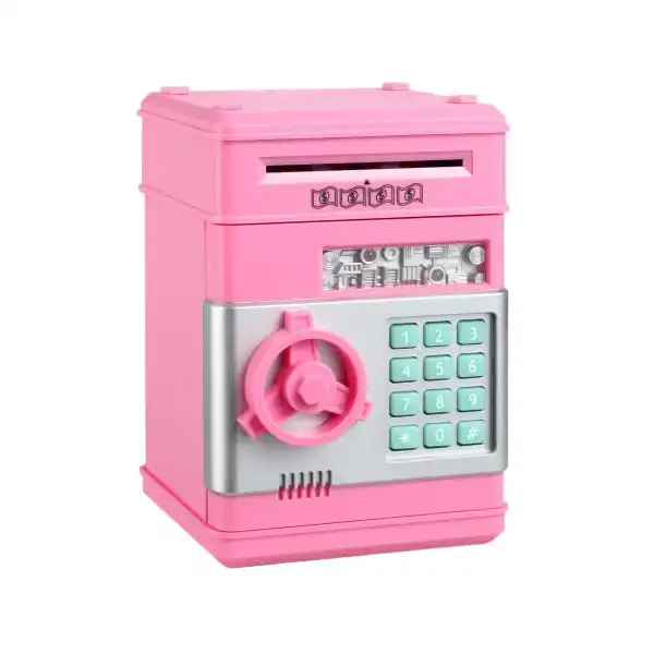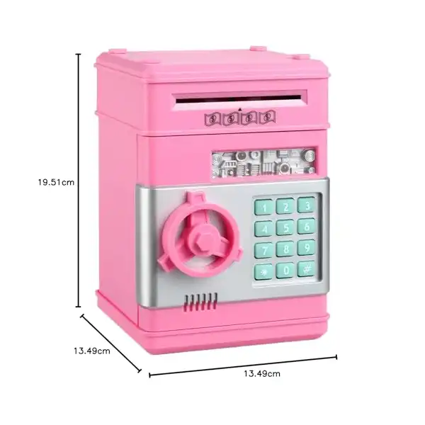 حصالة نقود إلكترونية صغيرة بتصميم ماكينة صراف آلي وخزنة آمنة للنقود والعملات المعدنية بقفل برمز سري للأطفال الأولاد والبنات من كيدز زون، (لون أحمر)