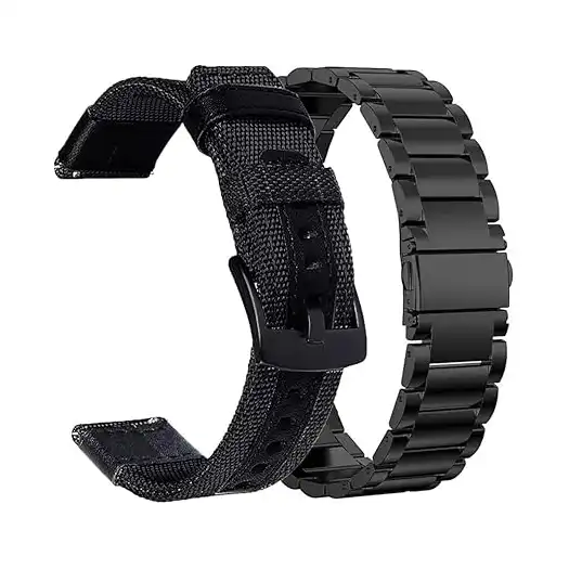 تصميم مثالي 22 ملم سريع الفك (لا يحتاج إلى أدوات) سوار ساعة بديل من النايلون وأساور ساعة معدنية تعمل مع ساعة سامسونج جالاكسي 3 45 ملم / ساعة جالكسي 46 ملم -R800 وجالكسي جير S3 فرونتير / ساعة ذكية كلاسيكية، كما يناسب أي ساعة ذكية بإطار 22 ملم.