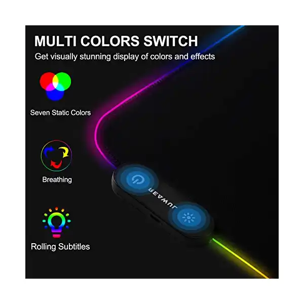 بادة ماوس وكيبورد للالعاب بتصميم متوهج وممتد بفضاء لوني ار جي بي من ريول، مقاس XL بـ 14 وضع اضاءة LED، قاعدة مطاطية مانعة للانزلاق ومقاومة للماء، بتصميم ناعم – بادة ماوس وكيبورد ناعمة – 800×300×4 مم