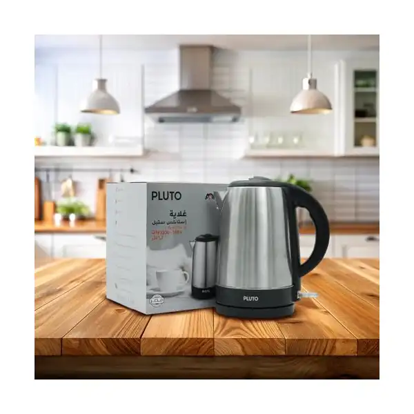 بلوتو غلاية كهربائية من الستانلس ستيل، سعة 1.7 لتر، 2200 واط، قاعدة دوارة 360 درجة، ايقاف تلقائي، حماية من الغليان الجاف,