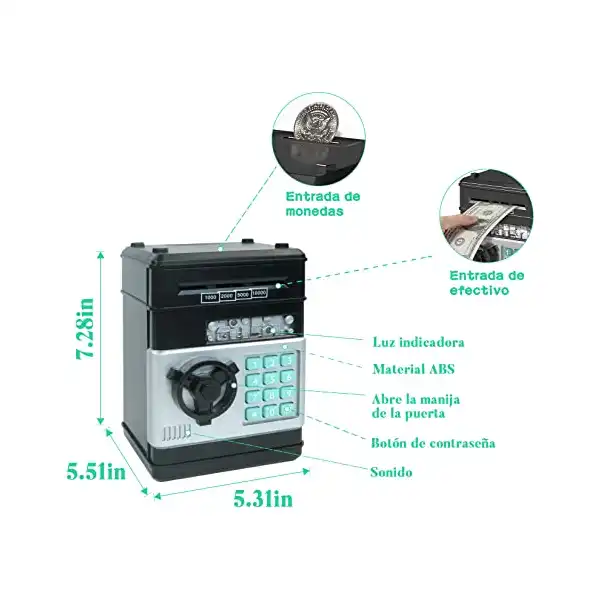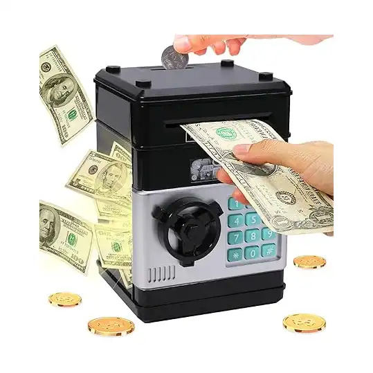 حصالة الكترونية على شكل خنزير للاطفال من توكوريسي، امنة ايه تي ام، رمز موسيقى، هدية عطلة للاولاد والبنات (اسود)حصالة موسيقية إلكترونية للأطفال، مقاس العبوة: 13.5*12.3*19.5 سم؛ وزن العبوة: 650 جرام؛ السعة: يمكن تخزين العملات المعدنية أو الفواتير؛ البطارية: 3 × بطاريات AA (غير متضمنة)