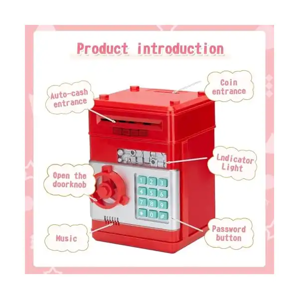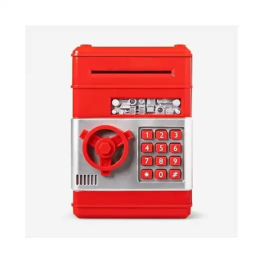 لماذا حصالة نقود إلكترونية صغيرة بتصميم ماكينة صراف آلي وخزنة آمنة للنقود والعملات المعدنية بقفل برمز سري للأطفال الأولاد والبنات من كيدز زون، (لون أحمر)؟