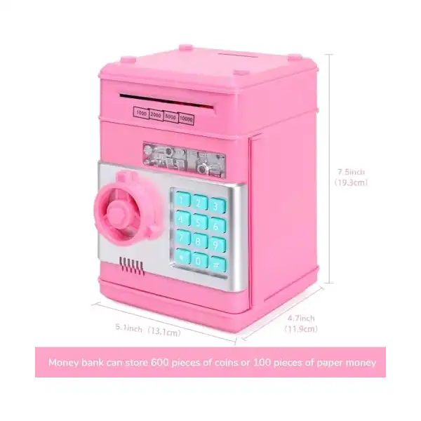 حماية بكلمة مرور للحفاظ على أموال الأطفال آمنة، تتطلب حصالة النقود الإلكترونية هذه حماية بكلمة مرور مكونة من 4 أرقام لفتحها (كلمة المرور الافتراضية هي 0000)، ويمكن للأطفال تعيين كلمة المرور الجديدة المفضلة لديهم في أي وقت. إذا نسيوا ذلك، يمكنهم إزالة البطارية لمدة 15 دقيقة وسيعود صندوق الأمان بكلمة المرور إلى إعداداته الافتراضية.