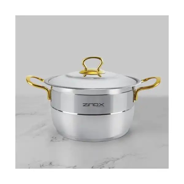 مميزات المنتج: زينوكس الزنوكى جودة الخامات الالمانية والموديلات التركية والصناعة مصرية . صالح للاستخدام مع جميع انواع الطهى وذلك حيث ان قاعدة الاناء بها قرص الومنيوم يصل سمكه 6 مم وذلك لسهولة التوزيع الحرارى. سعة لترية داخل الاناء لسهولة تحديد المعيار اثناء الطهى. لا يتفاعل مع الطعام ولا يتأثر الاحماض. سهولة التنظيف كما يمكن غسله بغسالة الاطباق. سلعة معمرة ولها ضمان ضد عيوب الصناعة. يحتفظ بدرجات الحرارة لوقت اطول من الالومنيوم.