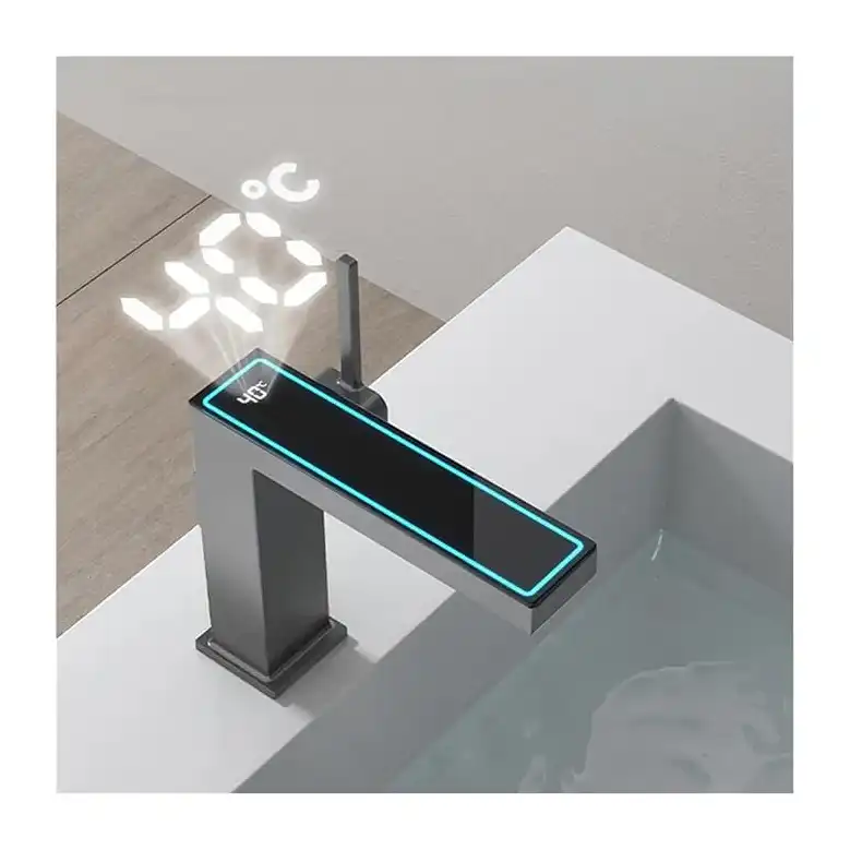 خلاط حوض ديجيتال GSW-002-GUN POLO – شاشة ديجيتال للحرارة – مقبض متحرك – جراي مطفي – سهل الاستخدام,