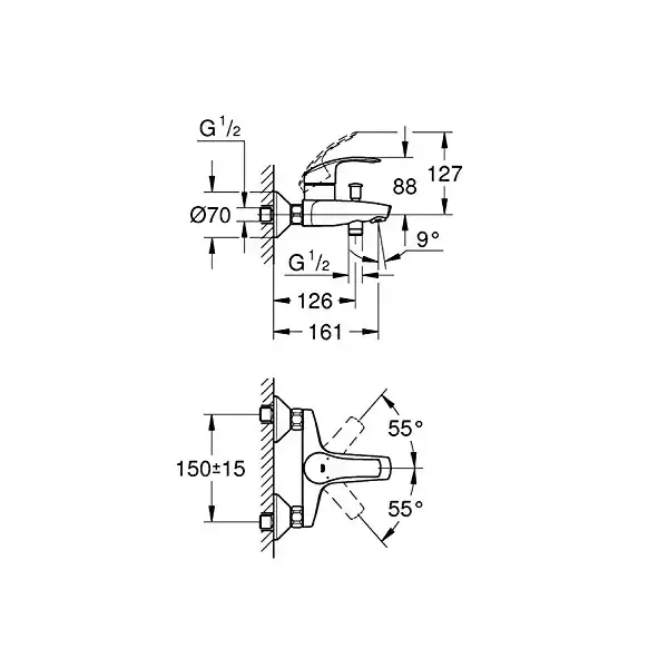 خلاط دش حمام يوروسمارت مع محول ومحدد لدرجة الحرارة من جروهي.