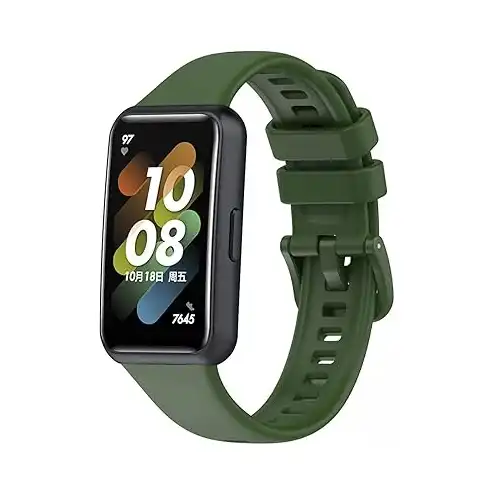 دادو سوار بديل من السيليكون متوافق مع ساعة هواوي باند 7، سوار ساعة بلون سادة (ارمي جرين),