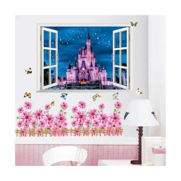 تفاصيل أكتر عن ديكور المنزل DIY كبيرة أميرة رومانسية بيربل قلعة نجوم PVC 3D الجدار ملصق الفن صائق جدارية للإزالة