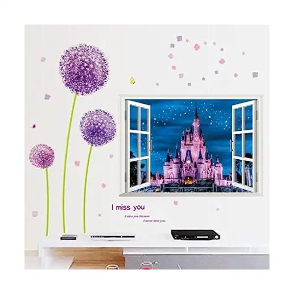 ديكور المنزل DIY كبيرة أميرة رومانسية بيربل قلعة نجوم PVC 3D الجدار ملصق الفن صائق جدارية للإزالة,