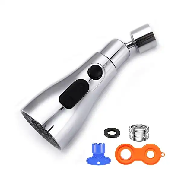 【3 أوضاع لمهوية بخاخ الحنفية】فوهة حنفية المطبخ مجهزة بعدد 2 زر لتشغيل ـ 3 أوضاع رش وظيفية، نفاثة دش مطرية مع خط مياه لطيف، نفاثة قوية مع خط ماء مزدوج، نفث تيار عادي مع خط ماء واحد. فقط اضغط على زر مفتاح بخاخ حنفية الحوض، ويمكن لمهوية حنفية المطبخ التبديل إلى الوضع الذي تريده.