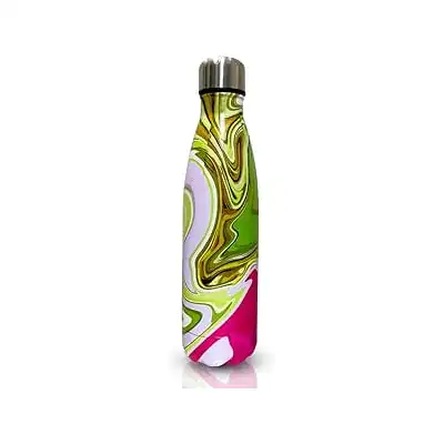 ستانلس ستيل آمن غذائيًا: مصنوعة من الستانلس ستيل الممتاز 18/8 (304) الآمن غذائيًا من الداخل والخارج للحصول على نكهة طازجة تدوم طويلاً. صحية وصديقة للبيئة أكثر من زجاجات المياه البلاستيكية ذات الاستخدام الواحد.
