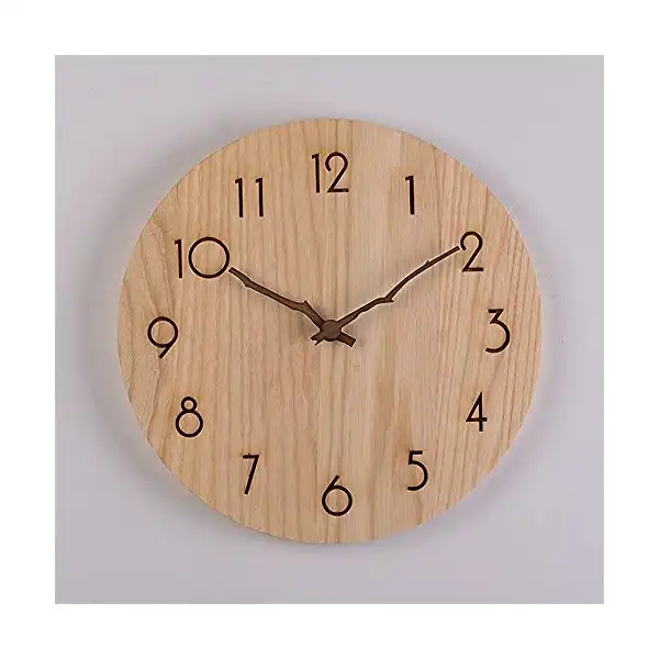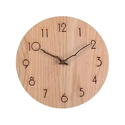 ساعة حائط دائرية خشبية بيضاء بطابع الشمال بتصميم بسيط وحديث من رهجوسي لغرفة المعيشة والنوم اللون: غصن رقمي ريجيوسي بيج