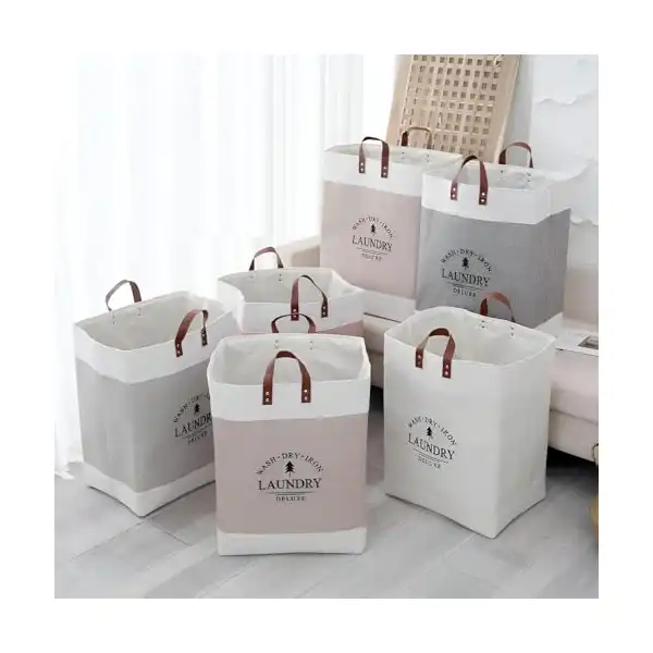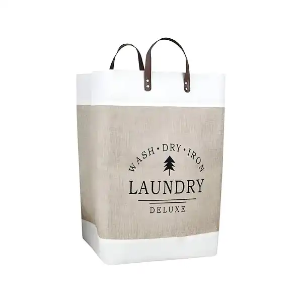 سبت غسيل، حل تخزين رائع مصنوع من قماش الكتان الصلب، لسهولة التعامل مع الغسيل والحفاظ على المظهر الجمالي لتلبية احتياجات ديكور منزلك