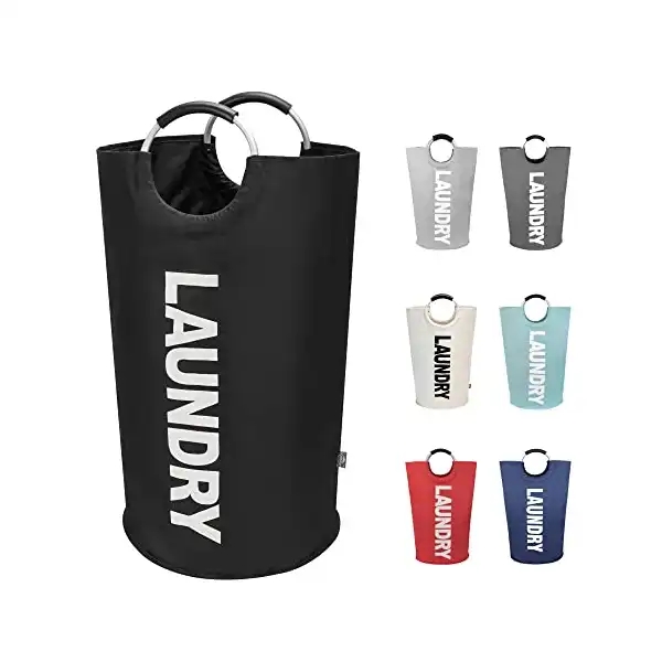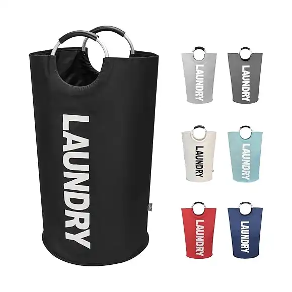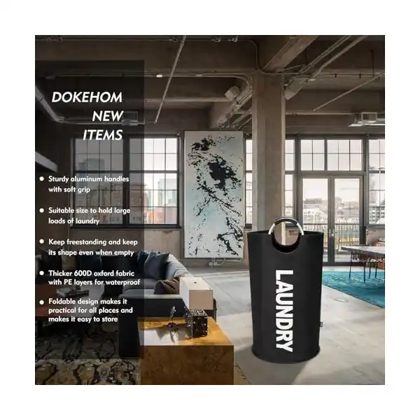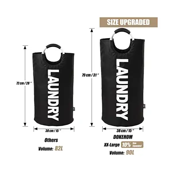 سبت غسيل كبيرة طويلة قابلة للطي وقائمة بذاتها بسعة 90 لتر (أسود) من دوك هوم,