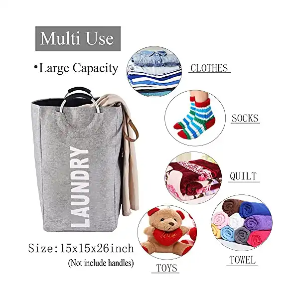 سعة أكبر – سلة غسيل طويلة للغاية مقاس 38 سم (طول) × 38 سم (عرض) × 66 سم (ارتفاع) (لا تشمل المقابض)، فتحة كبيرة في الجزء العلوي من السلة، تحمل كمية مناسبة من غسيل الملابس أو الألعاب. أكبر من معظم أكياس الغسيل.
