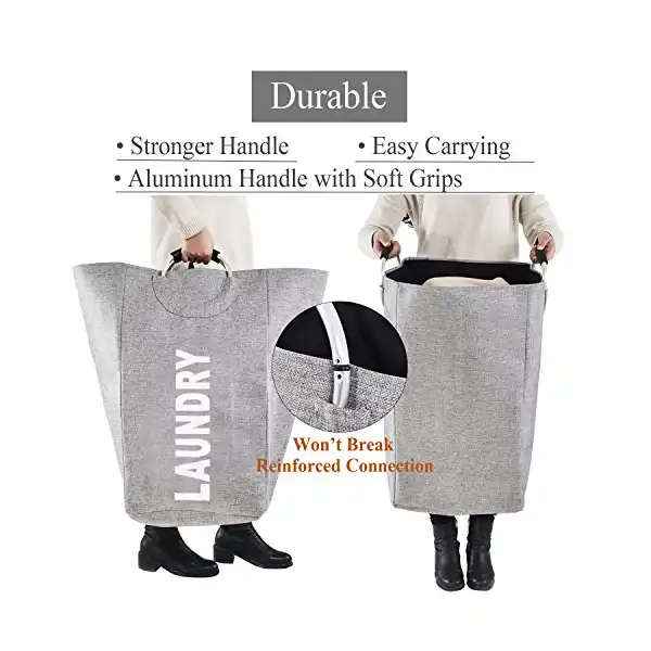 تفاصيل أكتر عن سبت غسيل كبير قابلة للطي بمقابض من خليط معدني من هوندري، سبت غسيل شديد التحمل وقابل للطي، سبت ملابس سميك للكلية والتخييم والمنزل