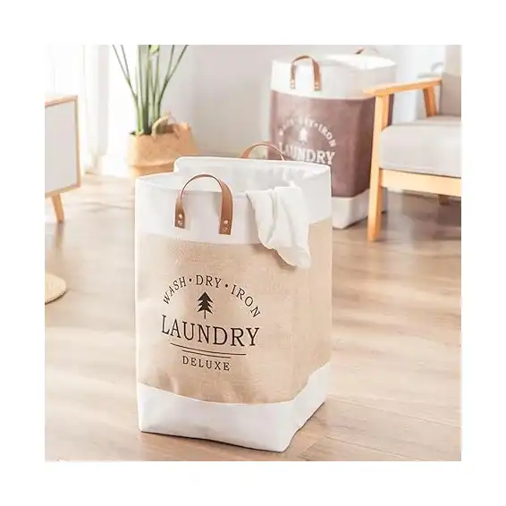 【مقابض من الجلد أنيقة ومتينة】تم تزويد سبت الغسيل بمقابض من الجد أنيقة ومزخرفة على الجانبين، مما يمنحها مظهرًا راقيًا ويضفي لمسة من الفخامة على تصميمها العام. هذه المقابض عصرية ومتينة في آن واحد، مما يضمن لك استخدامًا يدوم طويلًا.
