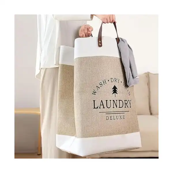 سبت غسيل منزلي بتصميم قابل للطي ومقاوم للماء مع مقبض لسهولة النقل لتخزين الملابس في غرفة النوم والحمام وأي مكان في المنزل من كليفيري