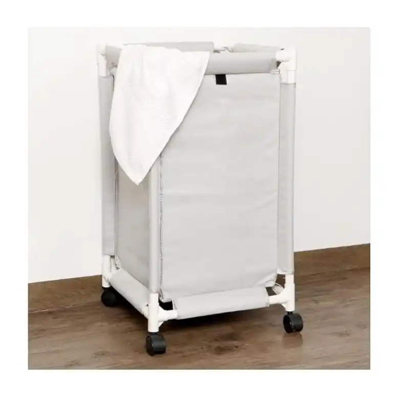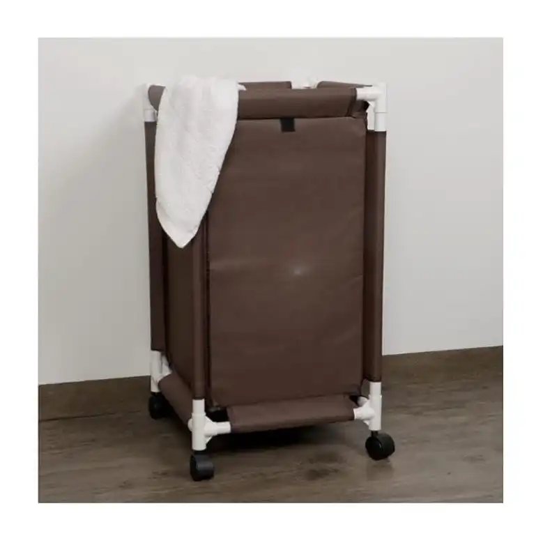 عربة غسيل بعجلات تضمن سهولة الحركة وحل مشكلة الرفع الثقيل. العجلات الدوارة متينة للدوران في جميع الاتجاهات. طلاء بلاستيكي من الداخل – السطح الداخلي لعربة أكياس الغسيل هذه مقاوم للرطوبة ومثالي للغسيل الجاف أو الرطب.