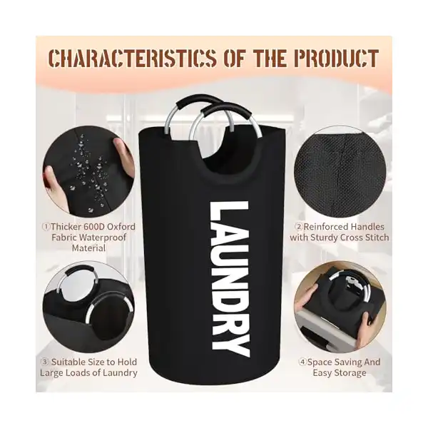 سعة كبيرة : 38 × 38 × 74 سم، يتميز سبت الغسيل المتسخ هذا بسعة تبلغ 82 لتر ويمكنه حمل 10-20 قطعة من الملابس الصيفية و3-5 قطع من الملابس الشتوية. سبت غسيل كبير بسعة 82 لتر يمكن أن يلبي احتياجات عائلتك بأكملها. يمكن استخدام السبت الكبير هذا كسلة تخزين ألعاب أو سبت غسيل أو سلة مخدات أو سلة أحذية وما إلى ذلك. سبت غسيل مقاوم للماء مع مقبض متوفر بلونين.