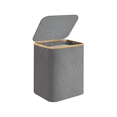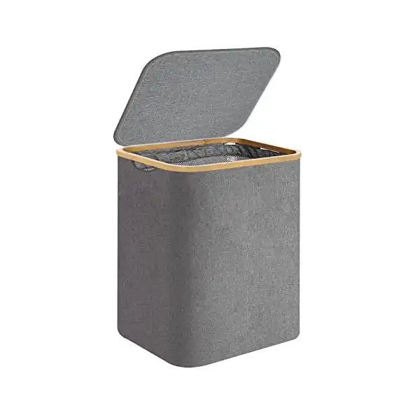 سلة غسيل مع غطاء، سبت غسيل سعة 60 لتر بمقابض من البامبو لتخزين الملابس والألعاب، سلة تخزين قائمة بذاتها قابلة للطي مع شنطة داخلية قابلة للإزالة لغرفة النوم والحمام من روتيت كولور، لون رمادي,