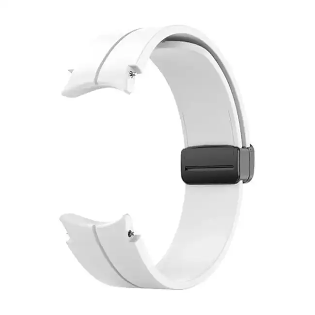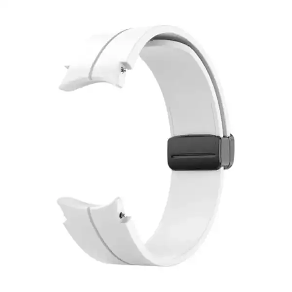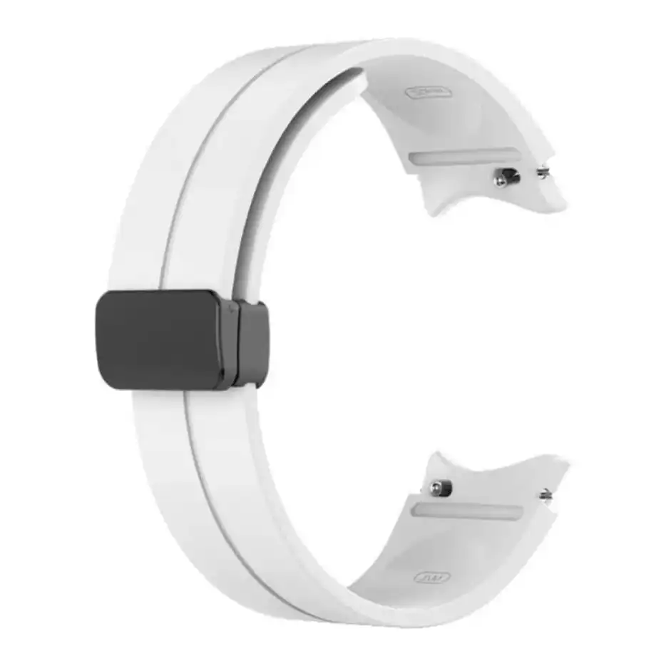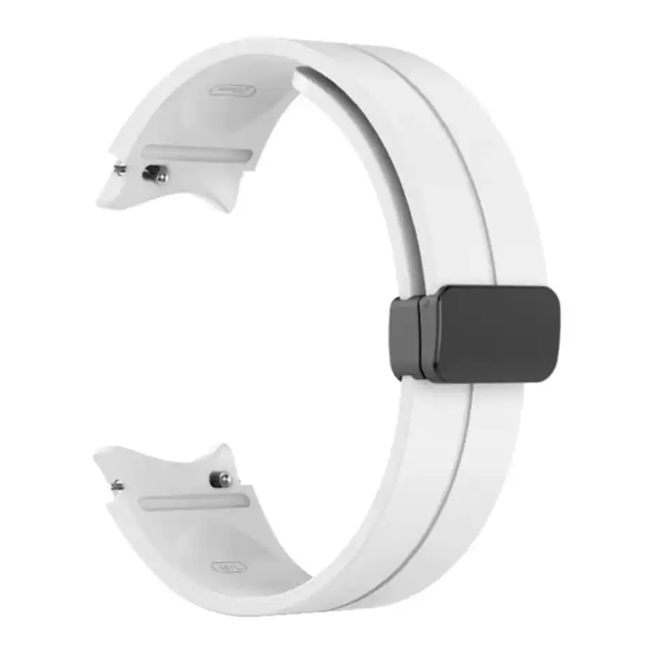 سوار بديل من السيليكون متوافق مع ساعة سامسونج جالاكسي 4 و5 و5 برو مع مشبك مغناطيسي قابل للطي، تصميم مميز بدون فجوات، أبيض