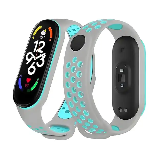 سوار رياضي من السيليكون متوافق مع ساعة مي باند 5 – 6 بمسامات للتهوية بديل سوارمتوافق شاومي الذكية One Size Next store رمادى – تركواز متعدد الألوان للبالغين الجنسين