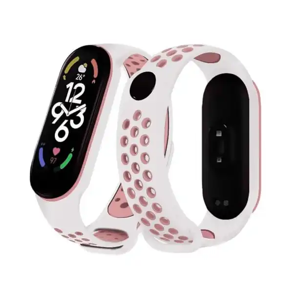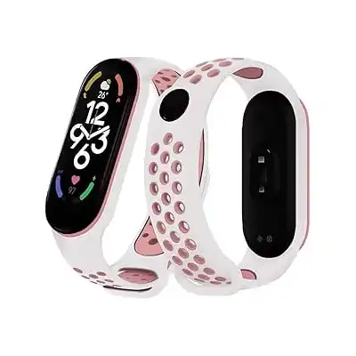 سوار رياضي من السيليكون متوافق مع ساعة مي باند 5- 6 بمسامات للتهوية بديل سوارمتوافق شاومي 5 الذكية One Size Next store ابيض – بينك للبالغين الجنسين