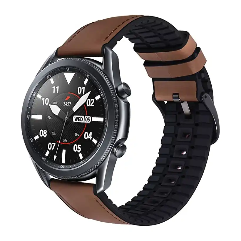 سوار رياضي هجين من الجلد والسيليكون متوافق مع ساعة هواوي Gt2 مقاس 46 ملم-22 ملم موبيليك بديل لساعة سامسونج جالاكسي 3 45 لون بني للبالغين الجنسين,