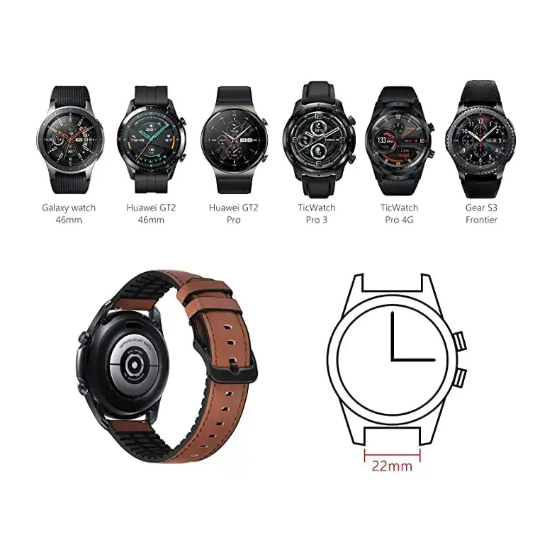 لماذا سوار رياضي هجين من الجلد والسيليكون متوافق مع ساعة هواوي Gt2 مقاس 46 ملم-22 ملم موبيليك بديل لساعة سامسونج جالاكسي 3 45 لون بني للبالغين الجنسين؟