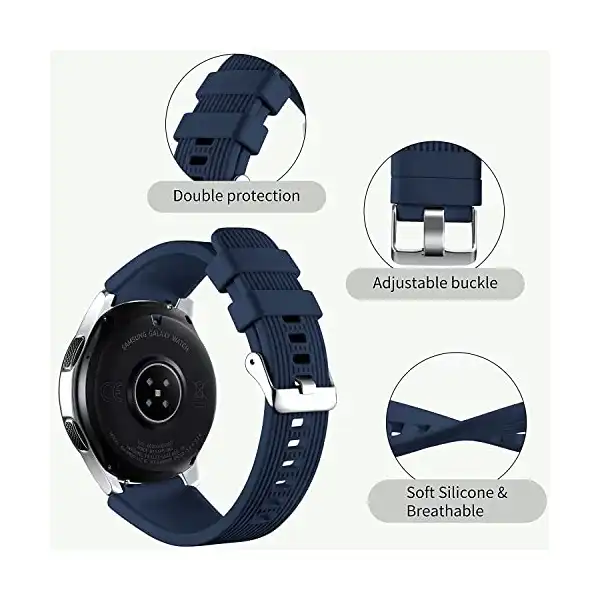 【التوافق】: سوار معصم بديل من السيليكون مقاس 22 ملم لساعة سامسونج جالاكسي 3 45 ملم / سامسونج جالاكسي 46 ملم / سامسونج جالاكسي جير s3 فرونتير / كلاسيك (أرقام الموديلات: sm r800 / r805)/ هواوي gt2 46 ملم / هواوي 3 / برو وتناسب أي ساعة ذكية بعروة بعرض 22 ملم.