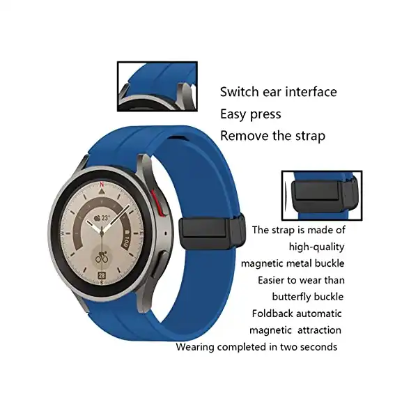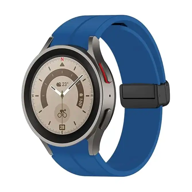 لماذا سوار ساعة رياضي من السيليكون بمشبك مغناطيسي قابل للطي لساعة سامسونج جالاكسي 5 برو مقاس 20 ملم من اليير (لون أزرق ياقوتي)؟