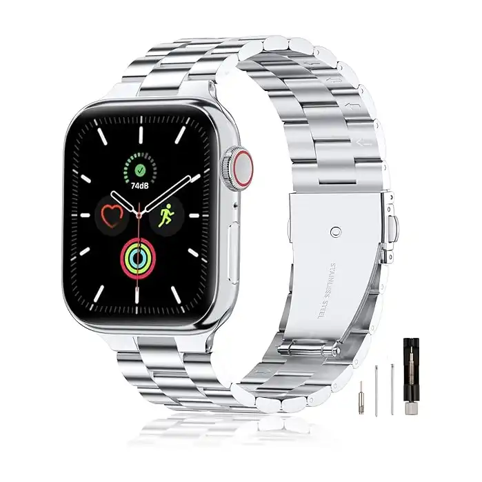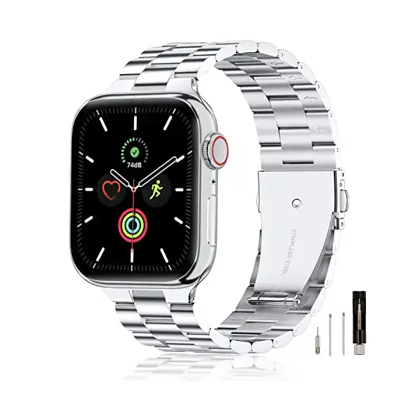 سوار ساعة ستانلس ستيل معدني بديل متوافق مع ساعة ابل سلسلة اي ووتش 7/SE/6/5/4/3/2/1 من وفيجل,