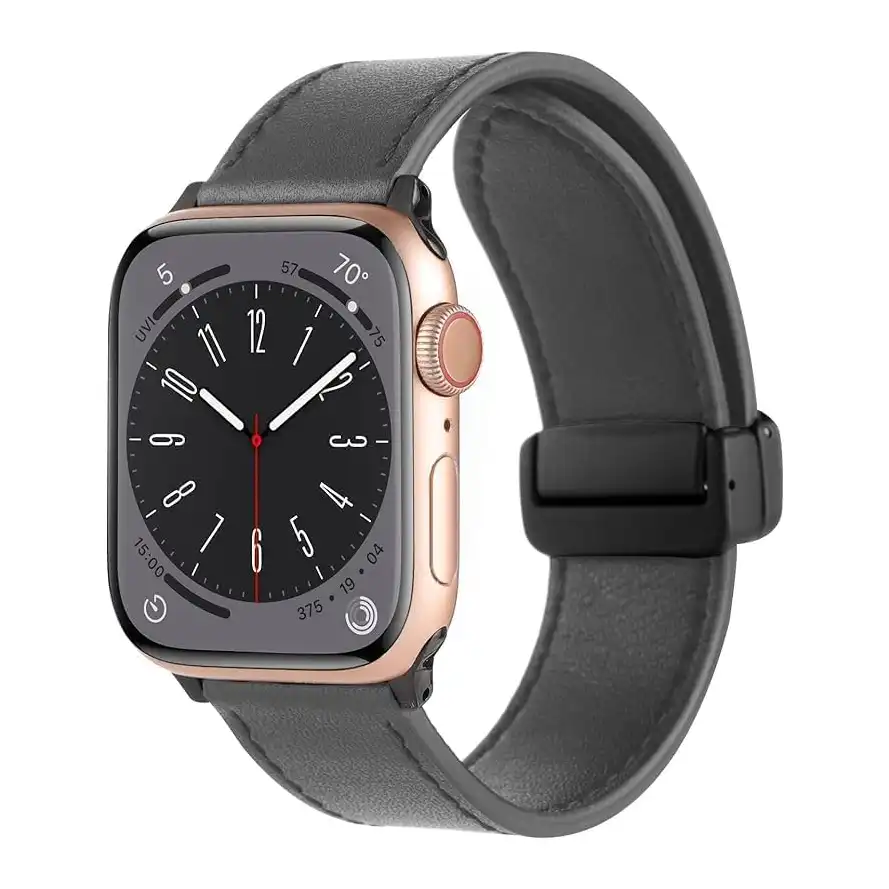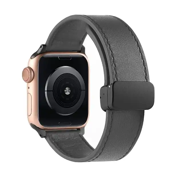 سوار ساعه جلدي متوافق ساعة ابل ووتش مقاس ( 42 / 44 / 45 / 49 ) ملم سوار من الجلد الطبيعي بتصميم مشبك مغناطيسي لساعة اي ووتش الترا اس اي 2 اس اي للرجال والنساء اللون (متعدد الالوان).