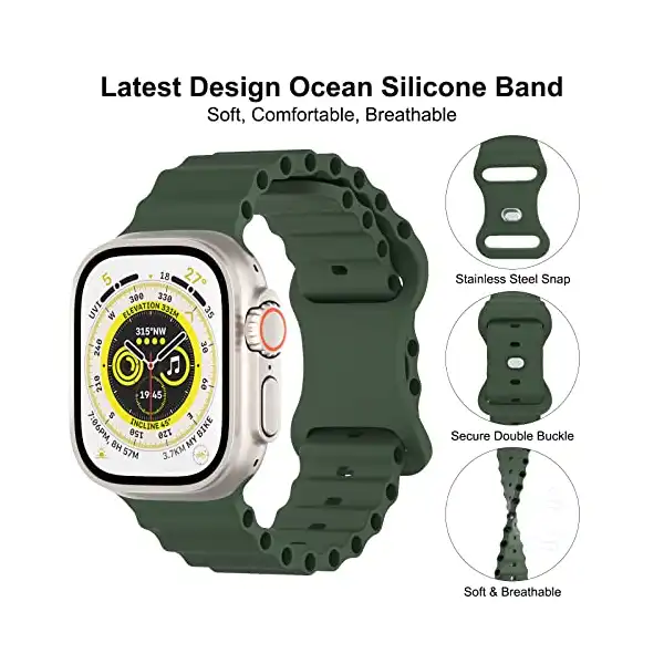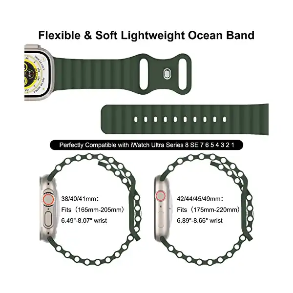 الموديلات المتوافقة: سوار دايكيس اوشن من السيليكون بمسامات للتهوية رياضي لساعة ابل يتميز بتصميمه الأحدث متوافق مع سوار ساعة اي ووتش الترا 49/45/41 ملم و44/42 ملم و40/38 ملم سلسلة 8/7/اس اي/6/5/4/3/2/1، يرجى اختيار المقاس وموديل الساعة الصحيحين.
