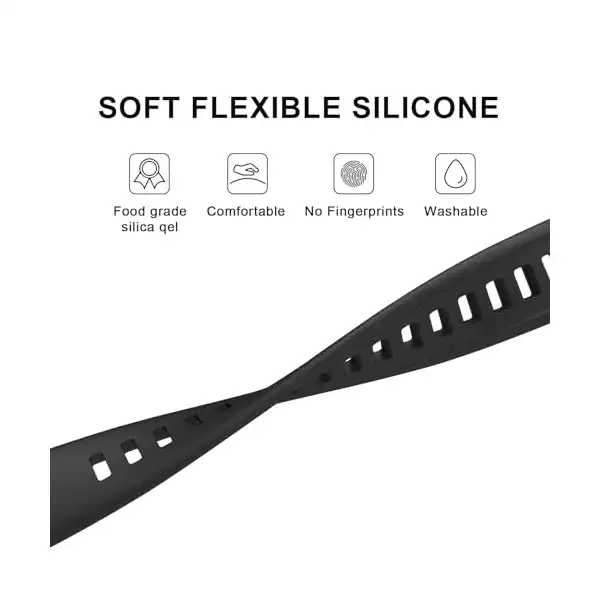 [المادة] مصنوع من السيليكون عالي الجودة، وهو ناعم وحريري الملمس ومقاوم للحرارة والاهتراء، كما أنه مريح وخفيف الوزن وجيد التهوية ومقاوم للعرق وسهل الحمل ولا يسبب تهيج الجلد.