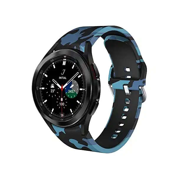 لماذا سوار سيليكون 20 ملم متوافق مع سامسونج جالاكسي ووتش 4 كلاسيك 46 42 ساعة ذكية مطبوع لساعة 44 40 ازرق مموه للجنسين – للبالغين؟