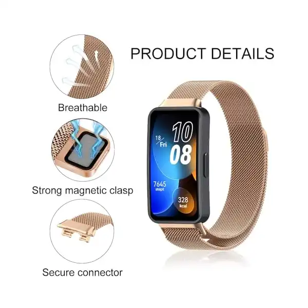【الموديلات المتوافقة】سوار ساعة معدني متوافق مع ساعات هواوي باند 8 وباند 9، مزود بتهوية جيدة وقابل للتعديل، مثالي للرجال والنساء كملحق عملي وأنيق لسوار ساعة هواوي 8/9. (ملحوظة: لا يتوافق مع ساعات هواوي باند 6 وباند 7.